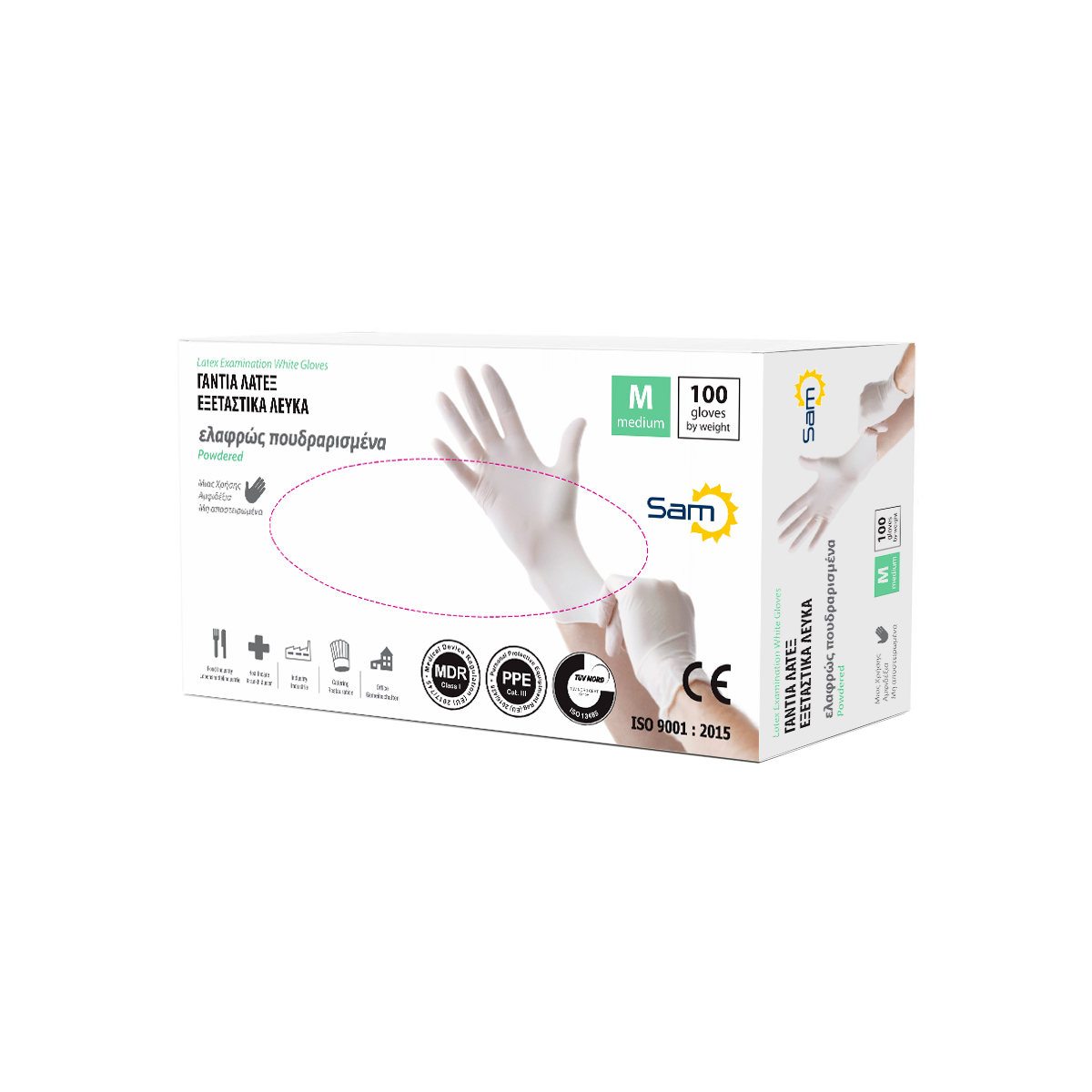 Εξεταστικά γάντια latex μιας χρήσης, κατασκευασμένα απο 100% latex, αμφιδέξια, σε κρεμώδες λευκό χρώμα, μη αποστειρωμένα. Είναι ευπροσάρμοστα και κατασκευασμένα σύμφωνα με τις υψηλότερες διεθνείς προδιαγραφές.