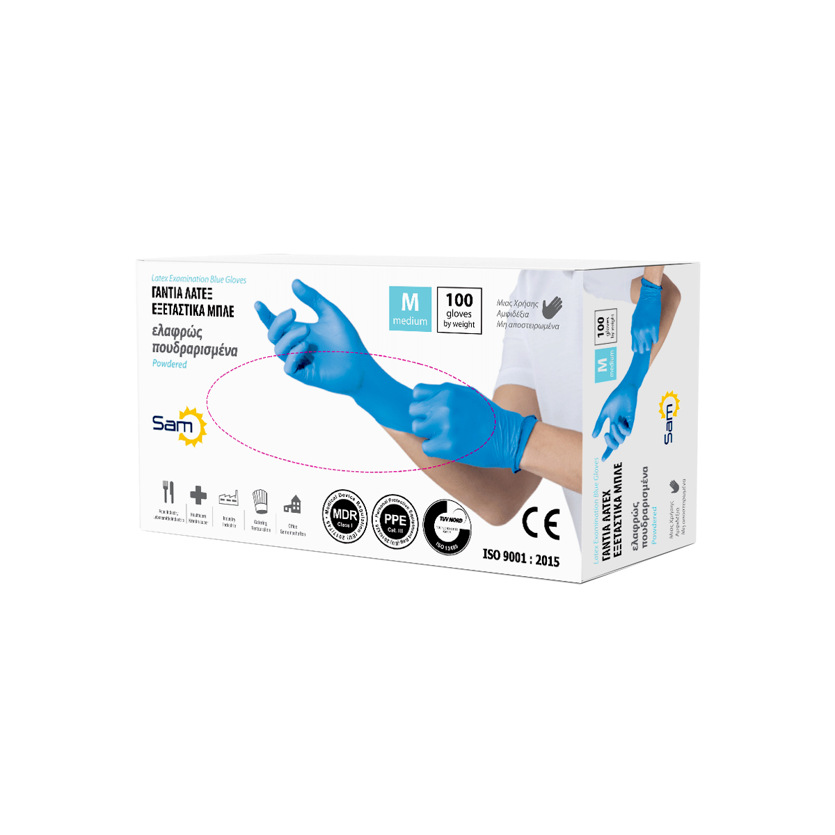 Γαντι Λατεξ Μπλε Ελαφρως Πουδραρισμενο-M/100Τμχ
