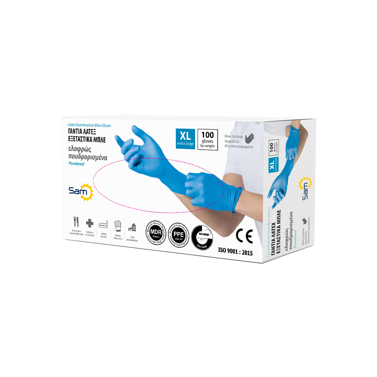 Γάντι Λάτεξ Μπλε Ελαφρώς Πουδραρισμένο-XL/100τεμ