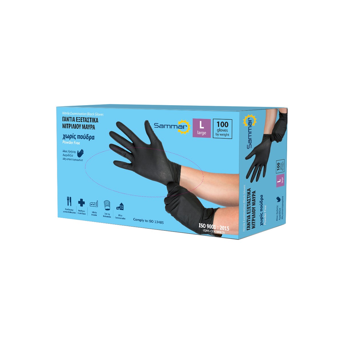 Γαντι Νιτριλιου Μαυρο Light Χωρις Πουδρα-L/100Τμχ