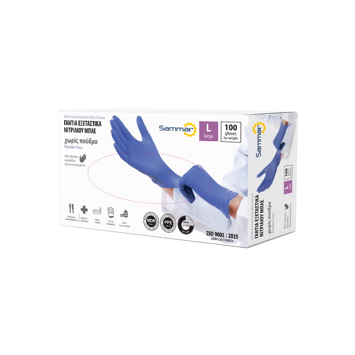 Γάντι Νιτριλίου Μπλε Χωρίς Πούδρα – L/100τεμ