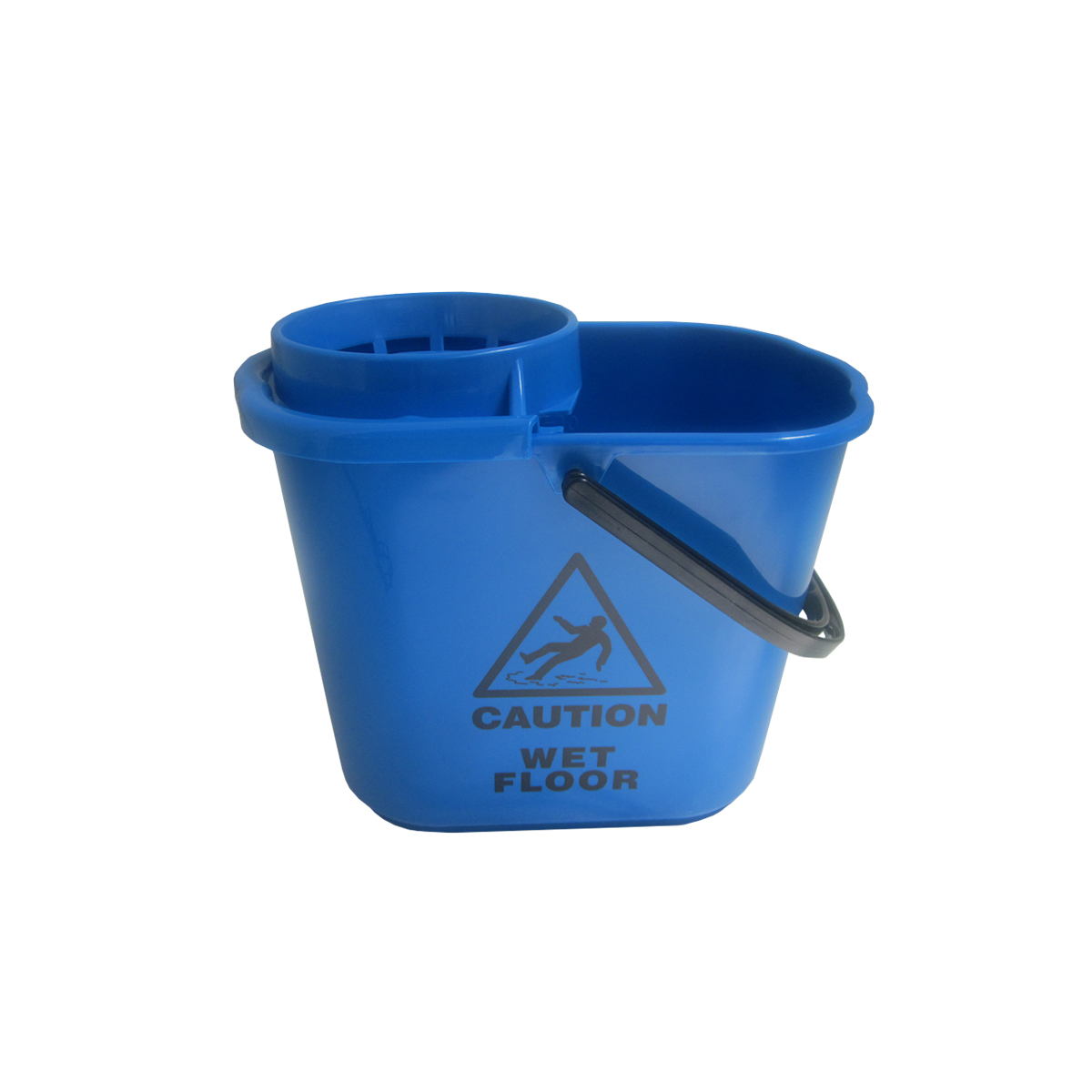 Κουβάς σφουγγαρίσματος επαγγελματικής και οικιακής χρήσης. Από ιδιαίτερα ανθεκτικό πλαστικό, με ενδείξη: "προσοχή βρεγμένο πάτωμα".